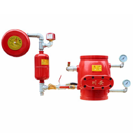 湿式报警阀是湿式自动喷水灭火系统的关键部件,该系统管网内充满压力水,长期处于备用工作状态,保护区域内某处发生火灾时,环境温度升高,喷头的热敏感元件破裂,喷头喷水并自动启动系统将水直接喷向火灾发生区域,同时发出报警信号。